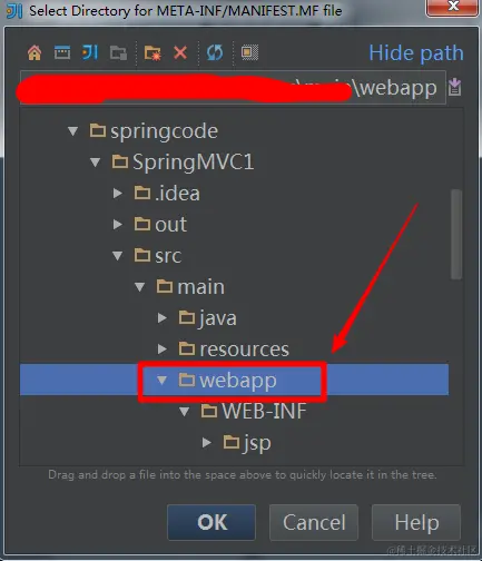 3.选择如下的路径创建META-INF文件,IDEA会自动创建该文件