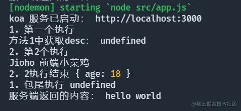 ctx.desc;并且接收next执行的返回值;方法 2 没有返回值 - 在最后的方法中,成功拿到了
