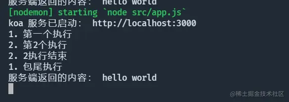 可以看到 nodemon 已经起作用了,我们无须重启终端也可以立刻看到代码修改后的运行效果~