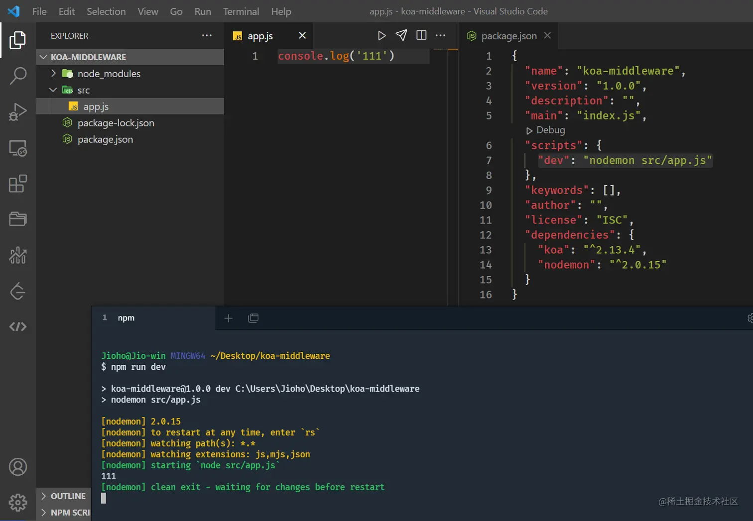 - 新建文件夹 koa-middleware(按自己喜好命名就好)