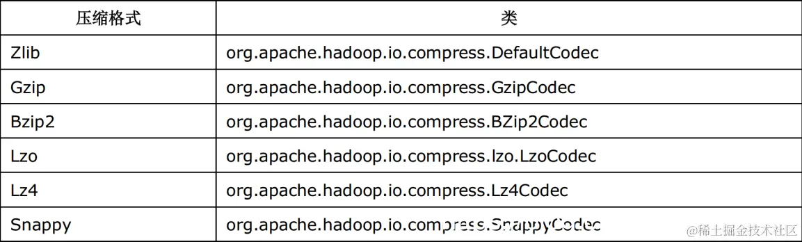 各个压缩方式所对应的 Class 类: