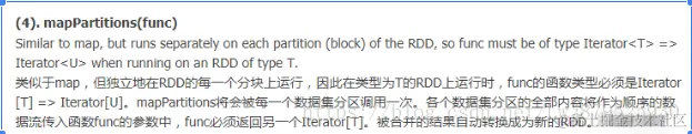 mapPatitions:用于遍历操作RDD中的每一个分区,返回生成一个新的RDD(transformation算子)