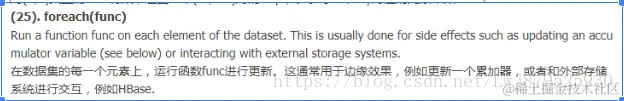 foreach:用于遍历RDD,将函数应用于每一个元素,无返回值(action算子)