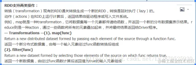 答:map:用于遍历RDD,将函数应用于每一个元素,返回新的RDD(transformation算子)