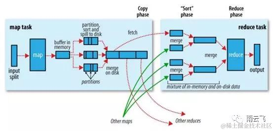 首先要将Map端产生的输出文件拷贝到Reduce端,但每个Reducer如何知道自己应该处理哪些数据呢?因为Map端进行partition的时候,实际上就相当于指定了每个Reducer要处理的数据(partition就对应了Reducer),所以Reducer在拷贝数据的时候只需拷贝与自己对应的partition中的数据即可。每个Reducer会处理一个或者多个partition,但需要先将自己对应的partition中的数据从每个Map的输出结果中拷贝过来。