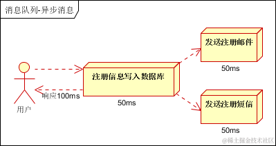 场景说明:用户注册后,需要发注册邮件和注册短信。传统的做法有两种 1.串行的方式;2.并行方式
