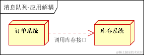 场景说明:用户下单后,订单系统需要通知库存系统。传统的做法是,订单系统调用库存系统的接口。如下图: