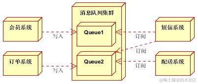 (2)扩展流程(发短信,配送处理)订阅队列消息。采用推或拉的方式获取消息并处理。