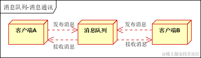 客户端A和客户端B使用同一队列,进行消息通讯。