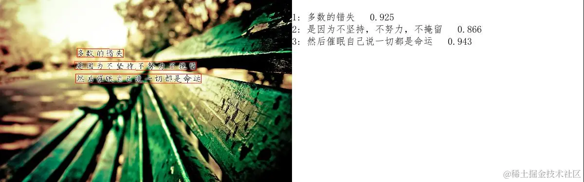 她不管你是横着、还是竖着、还是标点符号;只要是文字就能给你检测出来,精度肯定也没的说,大都在0.98以上。