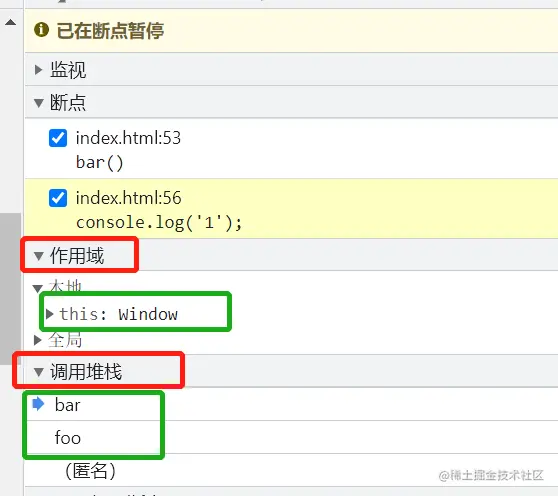 要想确定 " 函数被调用的位置 ",那就得先理解 调用栈 和 调用位置 的关系,可以从调用栈中分析出真正的调用位置的,因为它决定了 this 的绑定,举个例子: