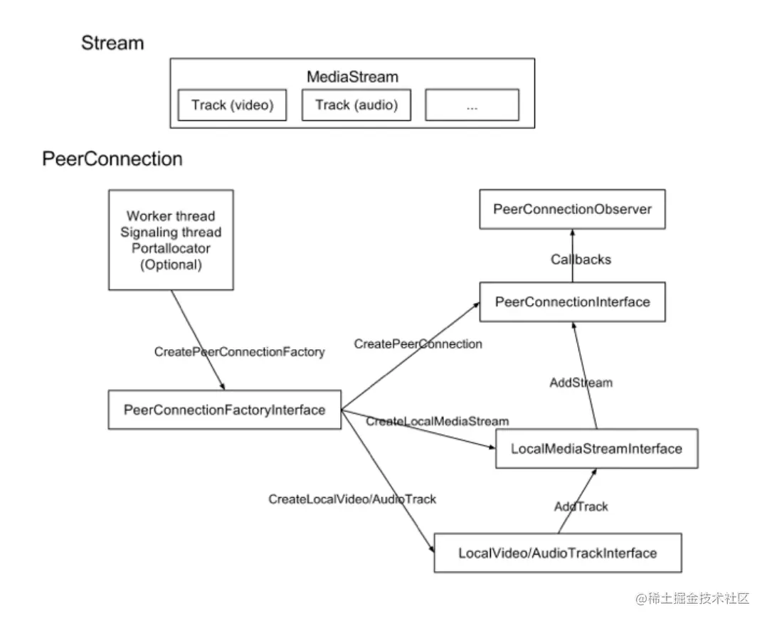 peer connection factory 不仅可以创建peerconnection 还可以创建local media stream和local audio/video track.