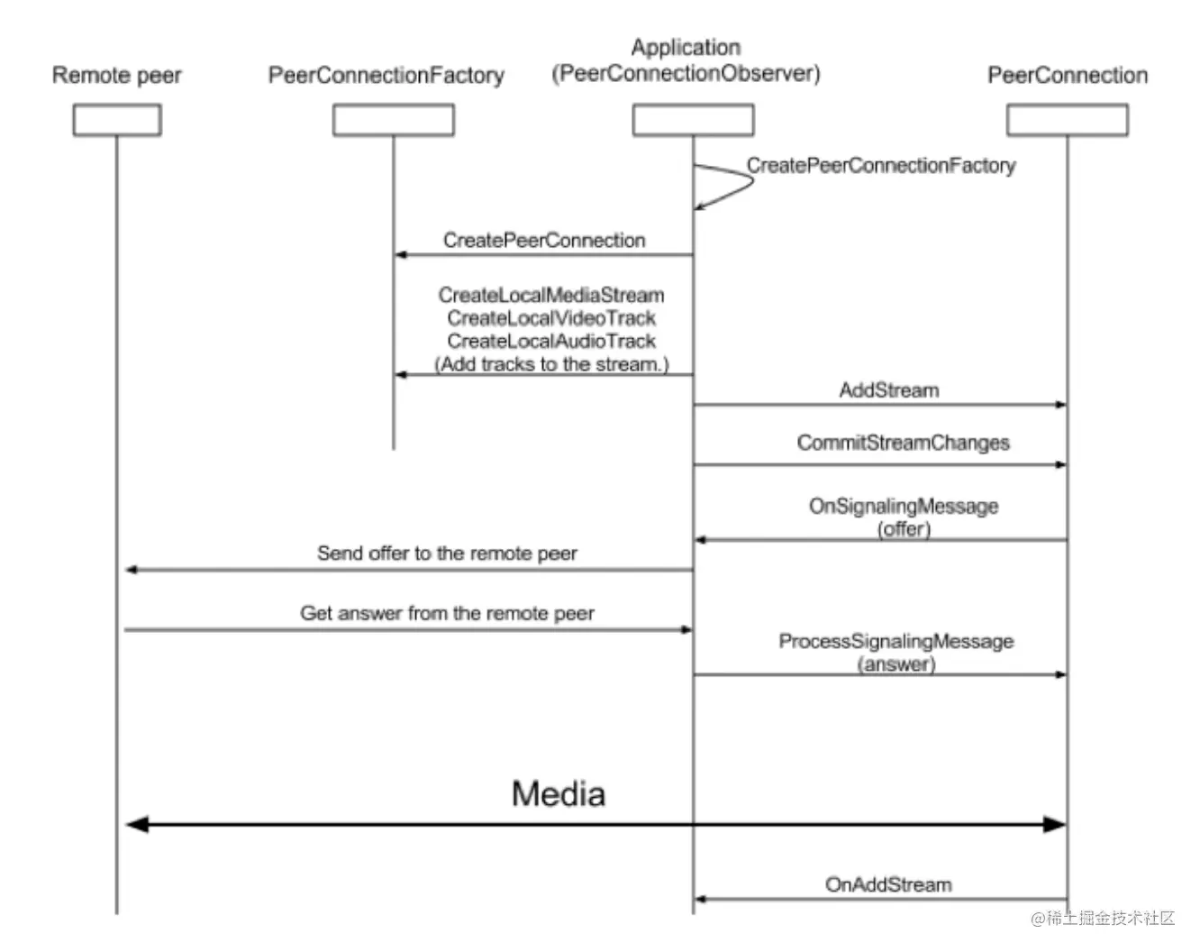 当远端有流发送过来之后, peerconnection 会交给应用层(peerconn section observe)进行处理.