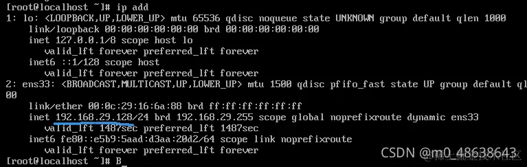 1.Xshell(VMware的开始界面的一些操作) FanMY_71 2022-02-27 155 阅读1分钟 内容总览: 1、退出系统 poweroff / exit 2、查看IP地址 ip add (蓝色的为ip地址 不需要加上后边的/24) 3、VMware登入成功界面 表示登入成功(另,输入密码时,是看不到的) 出现incorrect表示登入失败 登入成功后就可以打开Xshell并连接