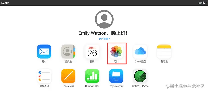 步骤二: 登录成功后,会出现以下页面,然后选中“照片”;