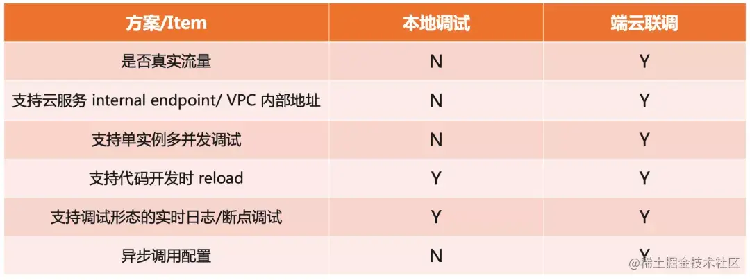 最后我们简单用一张表格总结本地调试和端云联调的差异: