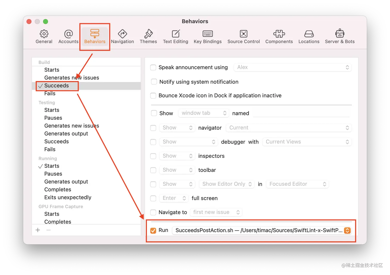 SucceedsPostAction.sh 是一个 bash 脚本,用作 Xcode 中的 “Succeeds” 发布操作。当你编译一个 Swift 包时,这个脚本会自动触发 SwiftLint。