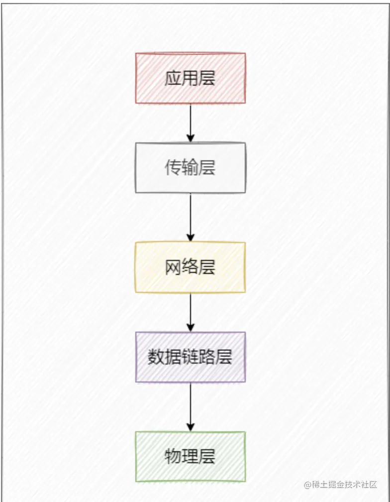 - 相比OSI七层模型,将OSI的应用层、表示层和会话层合为一层:应用层,其他不变。