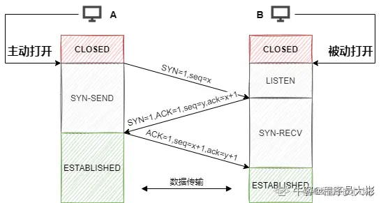 - A 向 B 发起建立连接请求,A 会随机生成一个起始序列号x