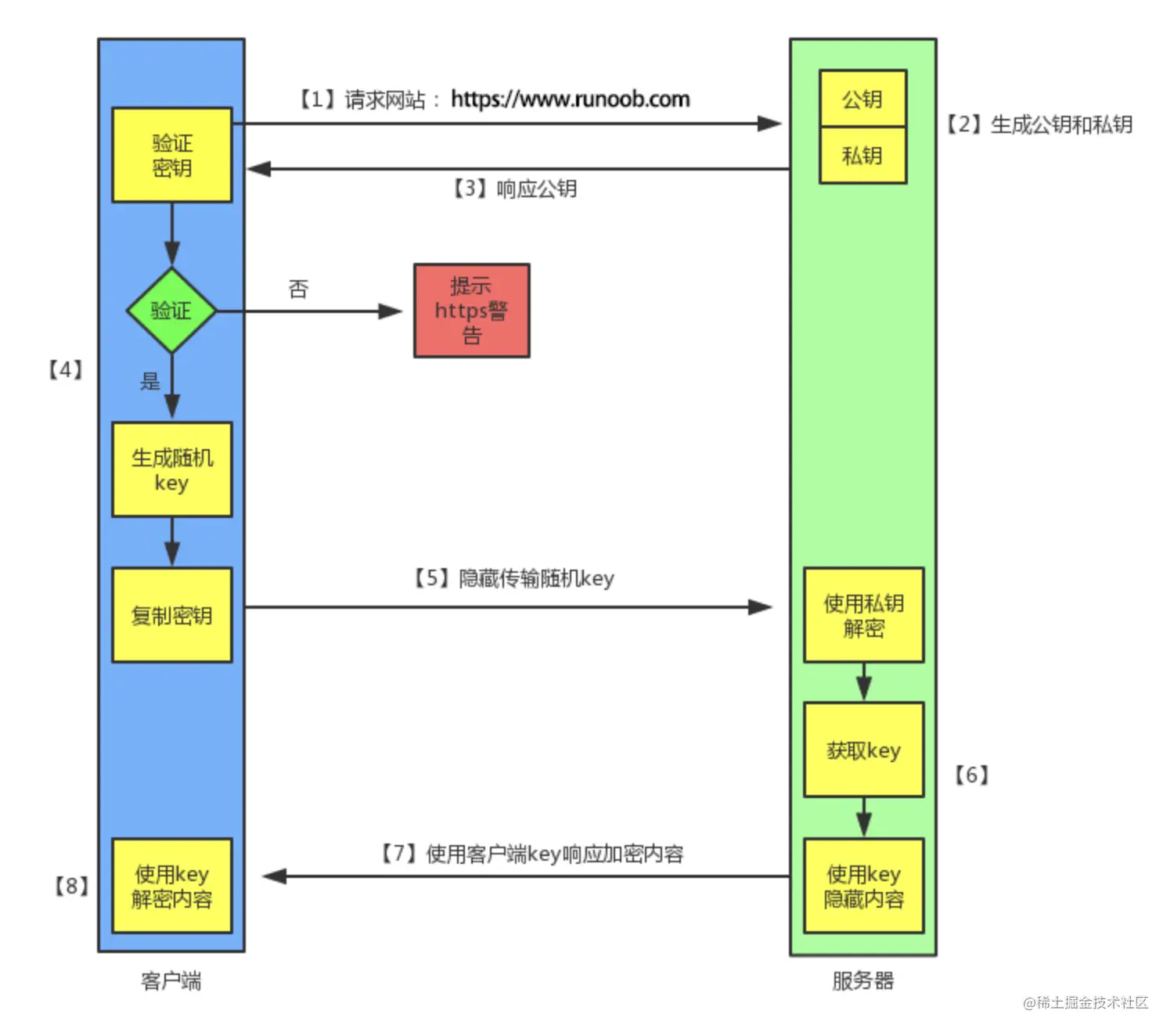 非对称加密:它需要生成两个密钥,公钥和私钥。公钥是公开的,任何人都可以获得,而私钥是私人保管的。公钥负责加密,私钥负责解密;或者私钥负责加密,公钥负责解密。这种加密算法安全性更高,但是计算量相比对称加密大很多,加密和解密都很慢。常见的非对称算法有RSA和DSA。