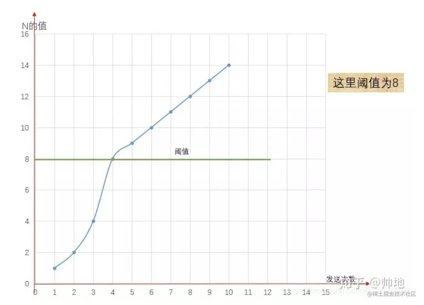 所以最终的策略是:前期指数增长,到达阈值之后,就以一个一个线性的速度来增长。