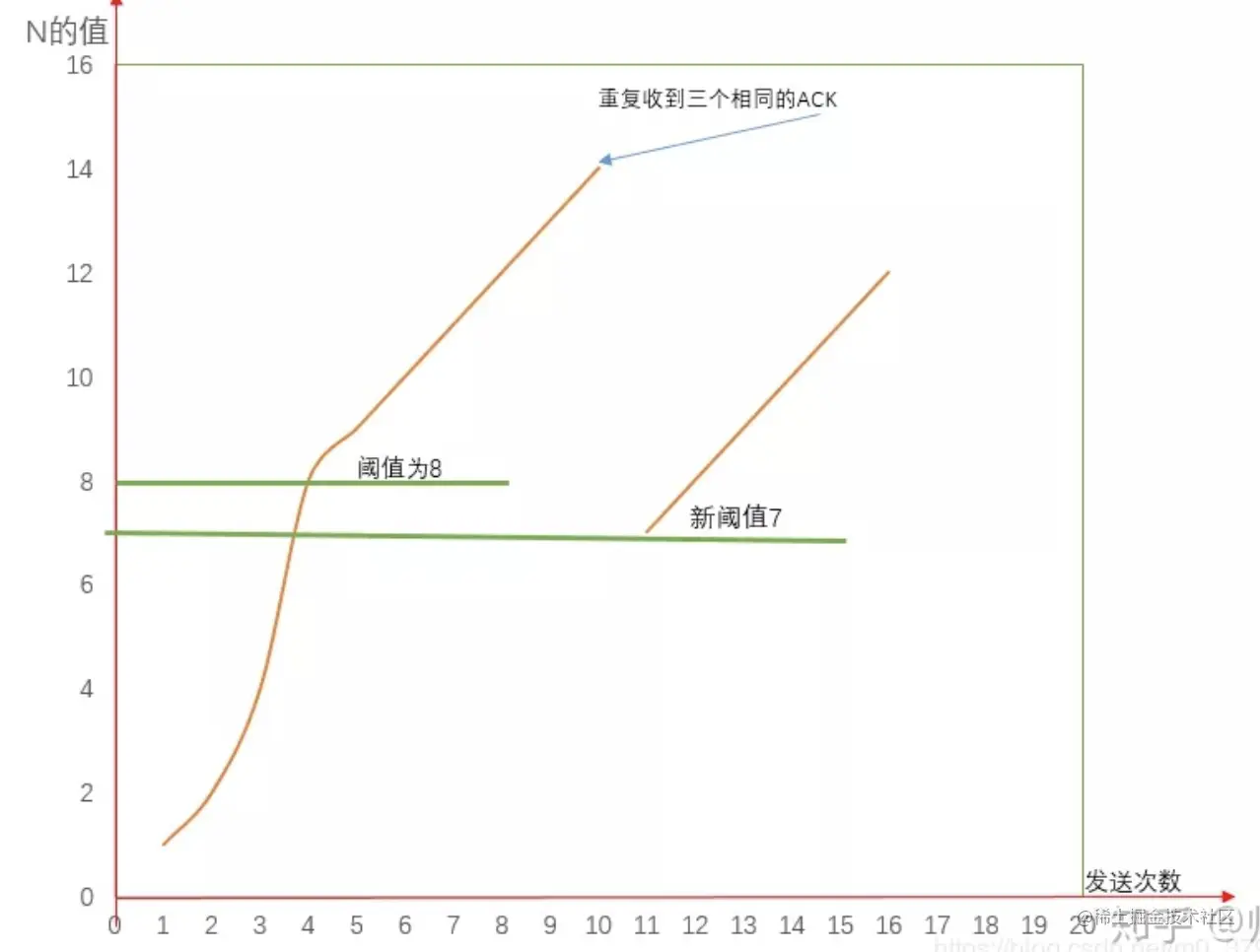 当发送方连续收到三个重复确认,就会把慢开始门限ssthresh减半,接着把cwnd值设置为慢开始门限ssthresh减半后的数值,然后开始执行拥塞避免算法,使拥塞窗口缓慢地线性增大。