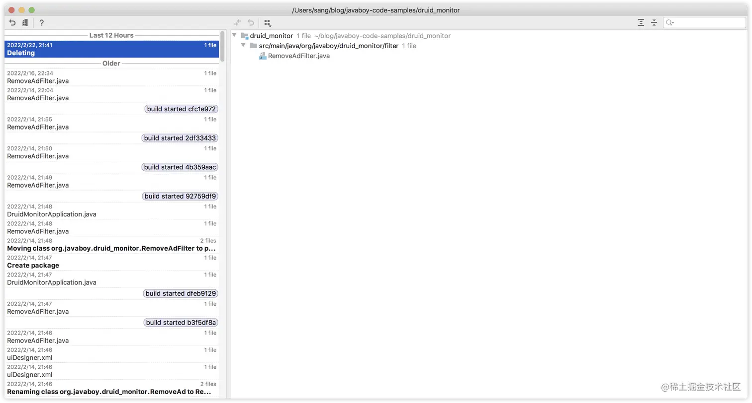 当我写这篇文章的时候,想起来 N 年前一件往事,我一不小心删除了一个刚刚写好的页面,又气又恼,后来趁着还有印象默默的花了半个多小时又重写了一遍,那个时候要是知道 IDEA 中这个功能该有多好呀!