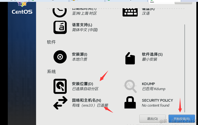 安装CentOS-7的步骤 FanMY_71 2022-02-28 124 阅读1分钟 步骤如下: (这里直接点下一步 不需要自己选择硬件兼容) (有CentOS 7最好) (注意别放C盘,且要在盘中创建一个文件夹) (一颗cpu里有两个核心) (点击完成) (找到刚刚下载的文件) 随后点击开始此虚拟机 (网络与主机名里把以太网打开) (注意:当要使用Xshell时不能关闭CentOS)