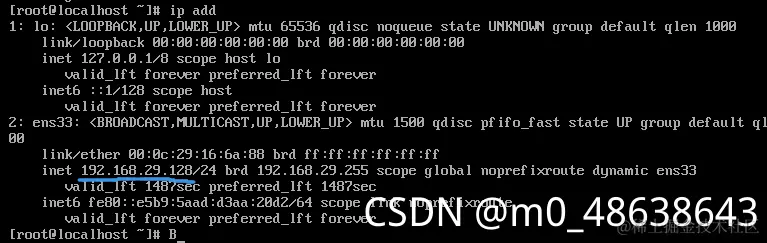 1.Xshell(VMware的开始界面的一些操作) FanMY_71 2022-02-28 119 阅读1分钟 内容总览: 1、退出系统 poweroff / exit 2、查看IP地址 ip add (蓝色的为ip地址 不需要加上后边的/24) 3、VMware登入成功界面 表示登入成功(另,输入密码时,是看不到的) 出现incorrect表示登入失败 登入成功后就可以打开Xshell并连接