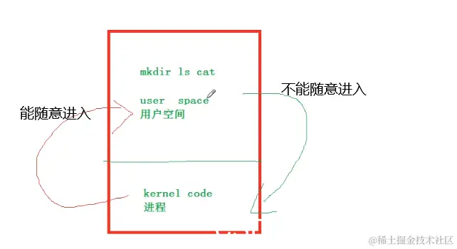 不能随意进入,但是内核空间会给用户空间一个接口,要是用户空间有需求可以通过该接口进入,让内核空间执行