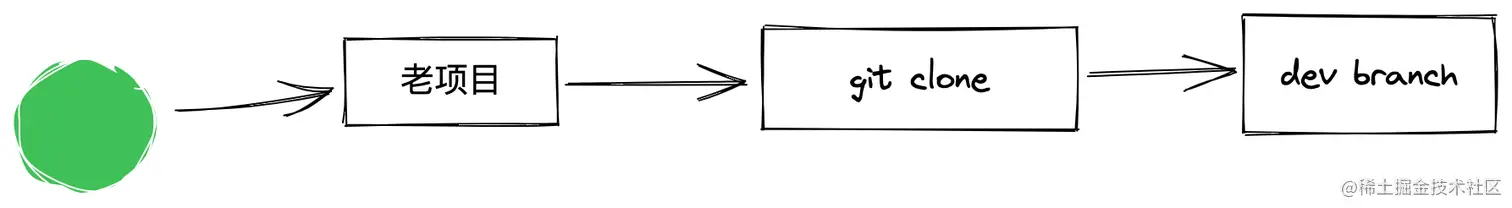 一种是开发老项目,我们需要去云端拉取代码, 然后切换到对应的 dev 分支进行开发。