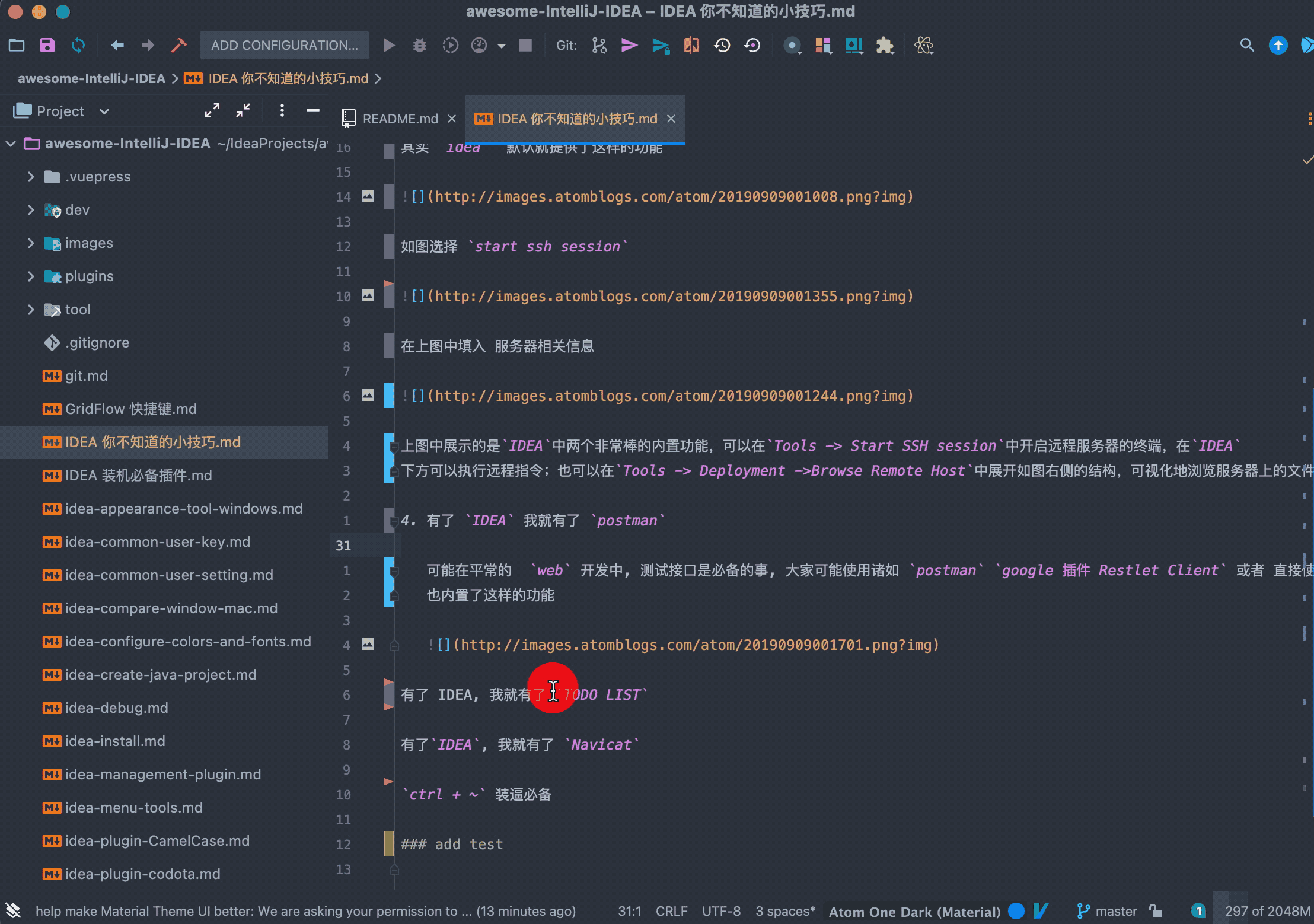 这是我们演示的项目:「awesome-Intellij-IDEA 」就将它比喻为我们公司正在做的项目。