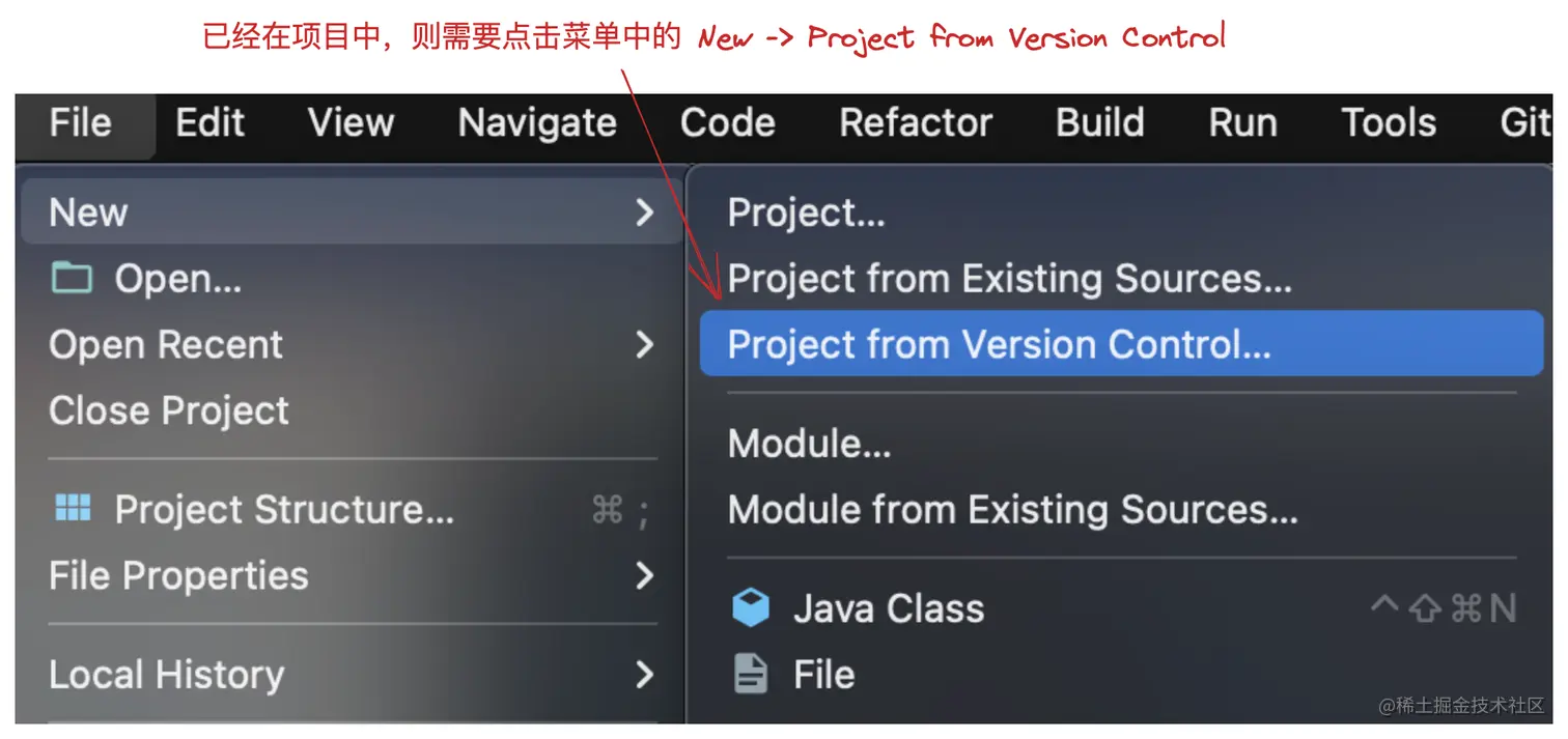 针对第一种老项目情况命令行就比较简单,就直接 git clone 一下就可以了,这里介绍一下在「IntelliJ IDEA」 中的几种 clone 方式