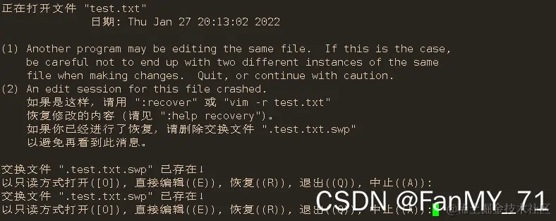 把这个.***.swp,这个隐藏的文件删除就可以了。