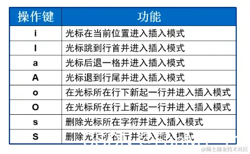 按i:命令模式的光标在哪里,进入输入模式的时候,光标就停在哪里 insert
