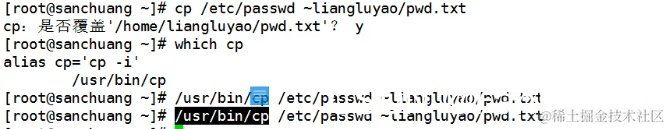 如果有相同的文件的时候,使用cp命令的时候,系统会给予提醒,我们输入y就会执行覆盖,之前的同名文件。但是我们在后台不能输入y。所以要这样: