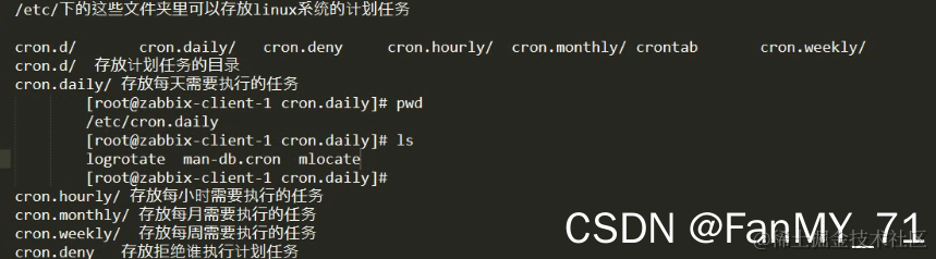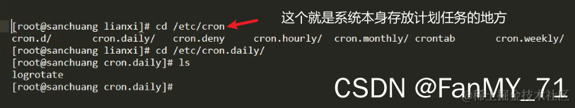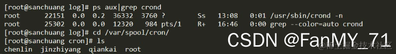 每个用户的计划任务都会放在 /var/spool/cron 这个文件夹下边;每个用户都对应一个计划任务