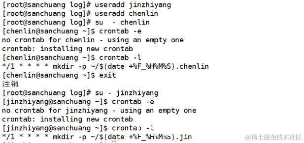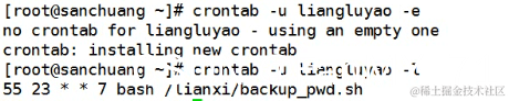 3、root用户给普通用户创建计划任务(crontab -e -u 用户)与普通用户自己创建计划任务