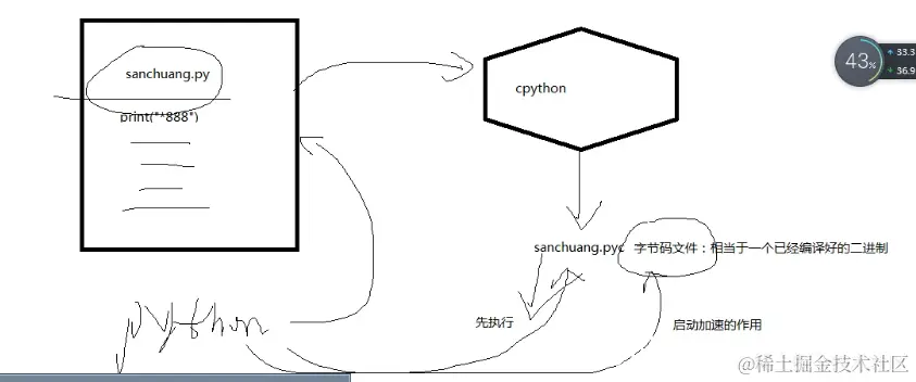 因为python其实也有一个中间状态,叫做字节码文件