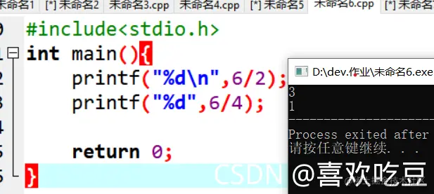 printf("%d",6/4);
