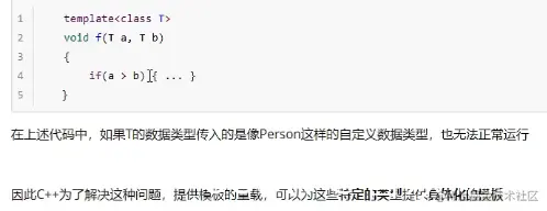 c++为了解决这种问题,提供模板的重载,可以为这些特定的类型提供具体化的模板