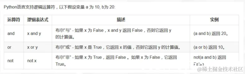 >>> 10 and 20 # 若都为真输出后边的值
