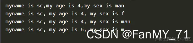 print(f"myname is {name},my age is {age},my sex is {sex}")