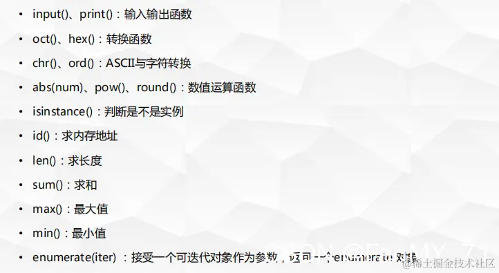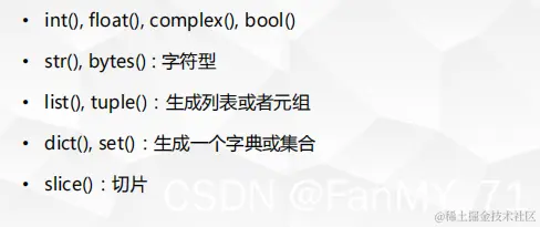 一般就是类型转换函数。工厂函数属于内建函数