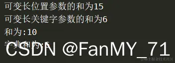 print(f"可变长关键字参数的和为{sum3}")