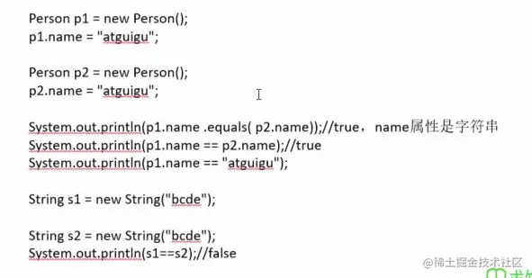 - 第三个输出true:"atguigu"同样存储在字符串常量池,都是引用同一个地址