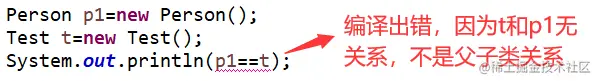 - 注:使用“==”进行比较时,符号两边的数据类型必须兼容(可以自动转换的基本数据类型除外),否则编译出错