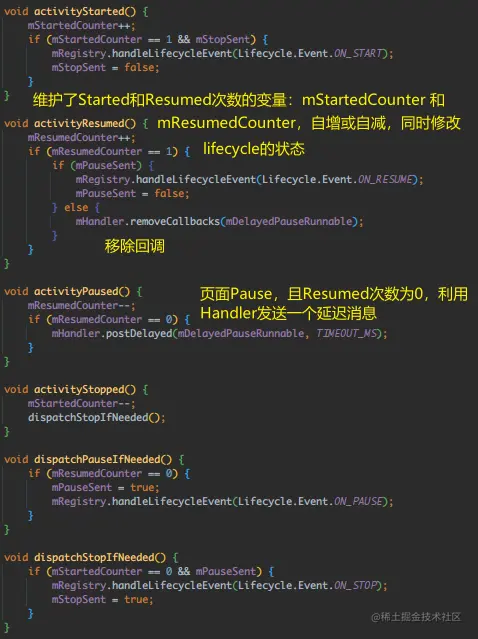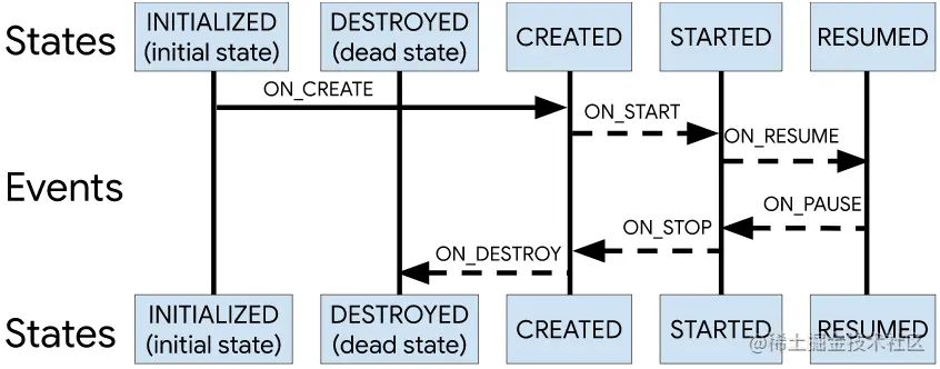 - Lifecycle.State.RESUMED → 回调onResume()后;