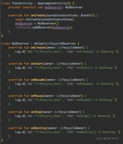 getLifecycle()获取Lifecycle实例,调用addObserve()