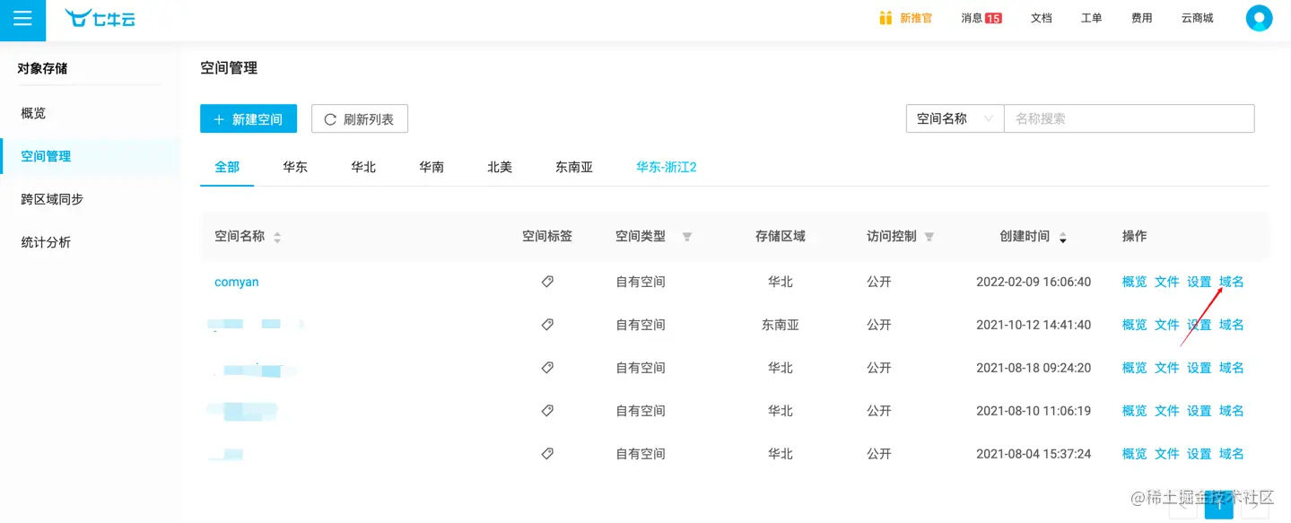 接下来让我们回到七牛云的空间管理,找到上一篇:如何用建木CI往七牛云上传文件文章中创建的名为comyan的空间。